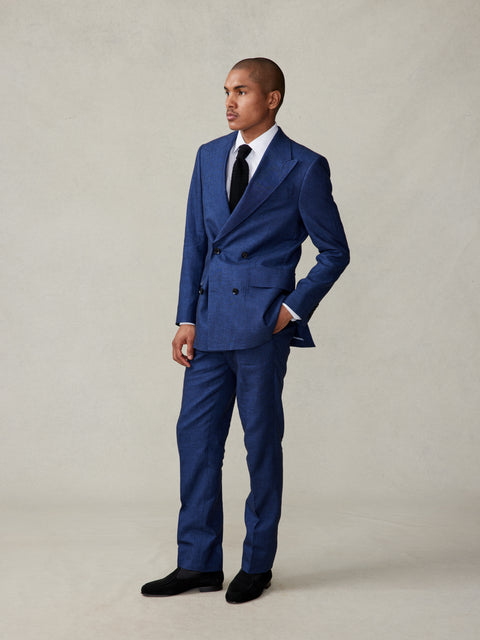 Our ink blue double-breasted linen suit is meticulously crafted for the discerning individual who appreciates fine details and superior comfort. The premium linen material is not only breathable but also durable, ensuring that you stay cool and comfortable even during extended events like summer weddings. This suit's vintage-inspired design, complete with a notch lapel and patch pockets, adds a touch of classic elegance that never goes out of style. Blue suits are a timeless choice in the world of formal wear, and our ink blue variant offers a modern twist that is both bold and refined. Ideal for wedding parties and other special occasions, this double-breasted suit provides a sharp, put-together look that commands attention. The slim-fit pants included with the jacket ensure a cohesive ensemble that flatters your physique without sacrificing mobility. Planning your wedding attire can be overwhelming, but our linen suit simplifies the process with its versatility and affordability. As an affordable linen suit option, it delivers exceptional value without compromising on style or craftsmanship. The suit separates allow for easy mixing and matching, so you can create a personalized outfit that perfectly suits your vision and the event's dress code. Formal wear should be as comfortable as it is stylish, and our linen suit excels in both areas. The breathable fabric is specifically chosen for its ability to keep you fresh and comfortable throughout long celebrations, such as summer wedding receptions. Additionally, the ink blue color is highly versatile, complementing a wide range of skin tones and coordinating seamlessly with various accessories. At The Black Tux, we pride ourselves on making formal wear accessible and enjoyable for everyone. Our ink blue double-breasted linen suit is available for both purchase and rental, providing flexibility to suit your needs and budget. With features like our free home try-on and fit guarantee, you can shop with confidence, knowing that we're here to ensure you look your absolute best for any formal event.