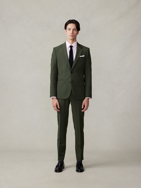 Full canvas suits (featured in our core suiting collection) contain a premium horsehair canvas layer throughout the entire jacket that molds to your body shape over time, resulting in superior draping, better breathability, and a truly personalized fit that improves with wear. Half canvas suits (found in our Essentials suiting) strategically place canvas material in the chest and lapel regions, delivering many of the quality benefits at a more accessible price point. Fused suits, commonly found in off-the-rack options, simply glue fabric layers together rather than using canvas, which often leads to an artificial stiffness, potential bubbling after dry cleaning, and significantly reduced longevity. Canvas construction—either full or half— is our choice for both appearance and durability in your wardrobe.