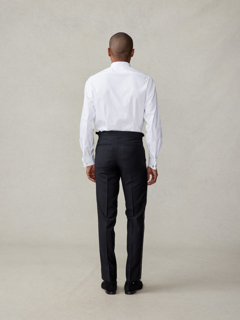A twist on the classic black tuxedo pant. Pair with the Grosgrain Bound Tuxedo.