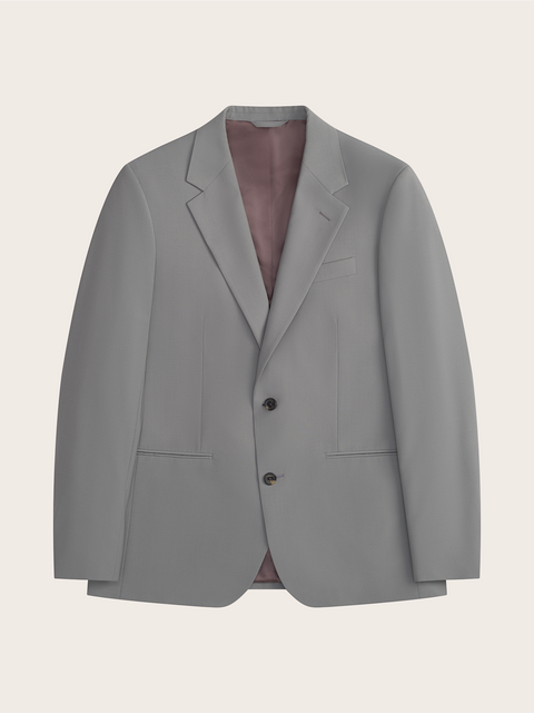 The essential sage stretch wool suit jacket with a notch lapel and double button closure.